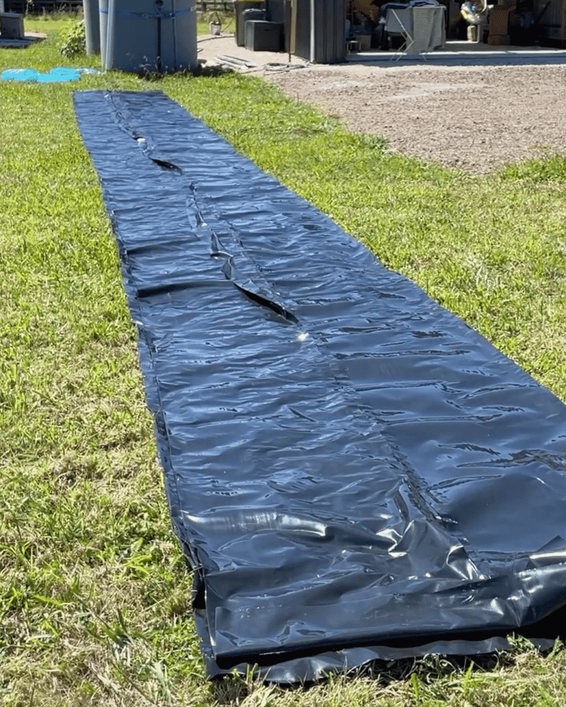 As I mentioned, I went with a black silage tarp. If you’re doing this, here’s what to look for: